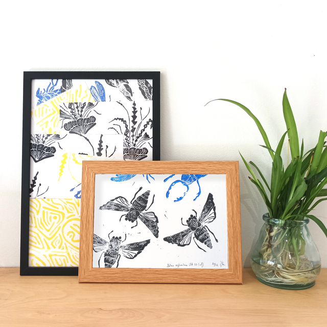 Certaines linogravures sont disponibles directement en boutique Chez les Voisines.