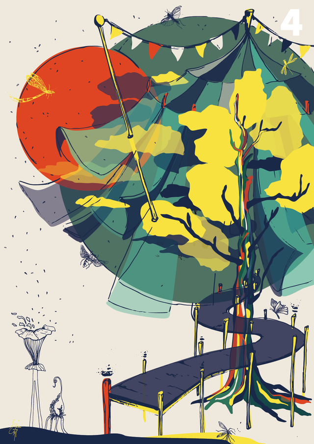 Illustration réalisée à la main puis numérisée et colorisée par ordinateur.