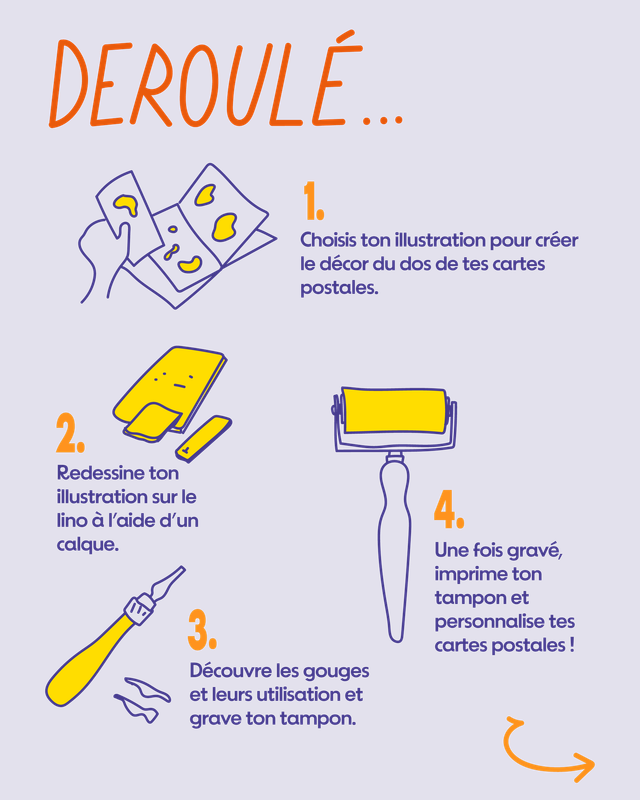 Pendant les vacances, viens t’essayer à la gravure et créer tes cartes postales à envoyer à tes proches !